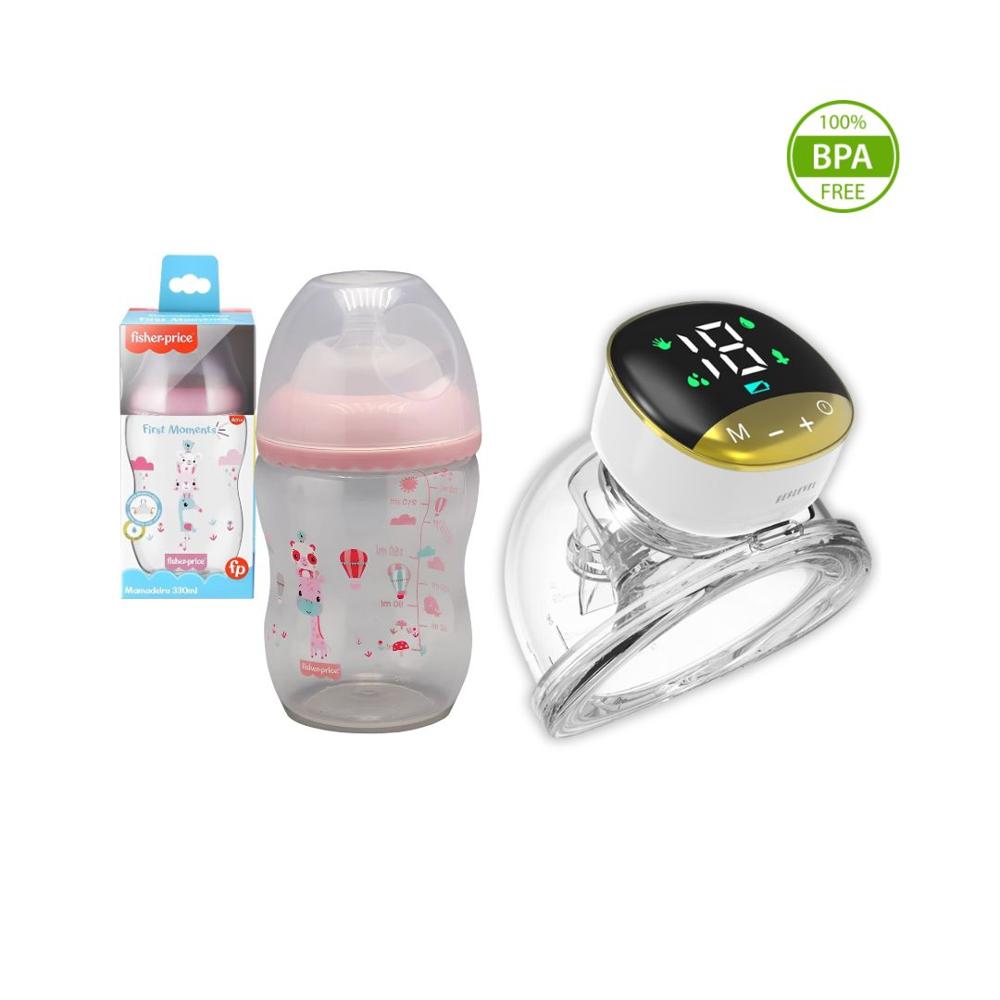 Extractor de Leche Portátil Manos Libres y Biberón Rosa 270Ml