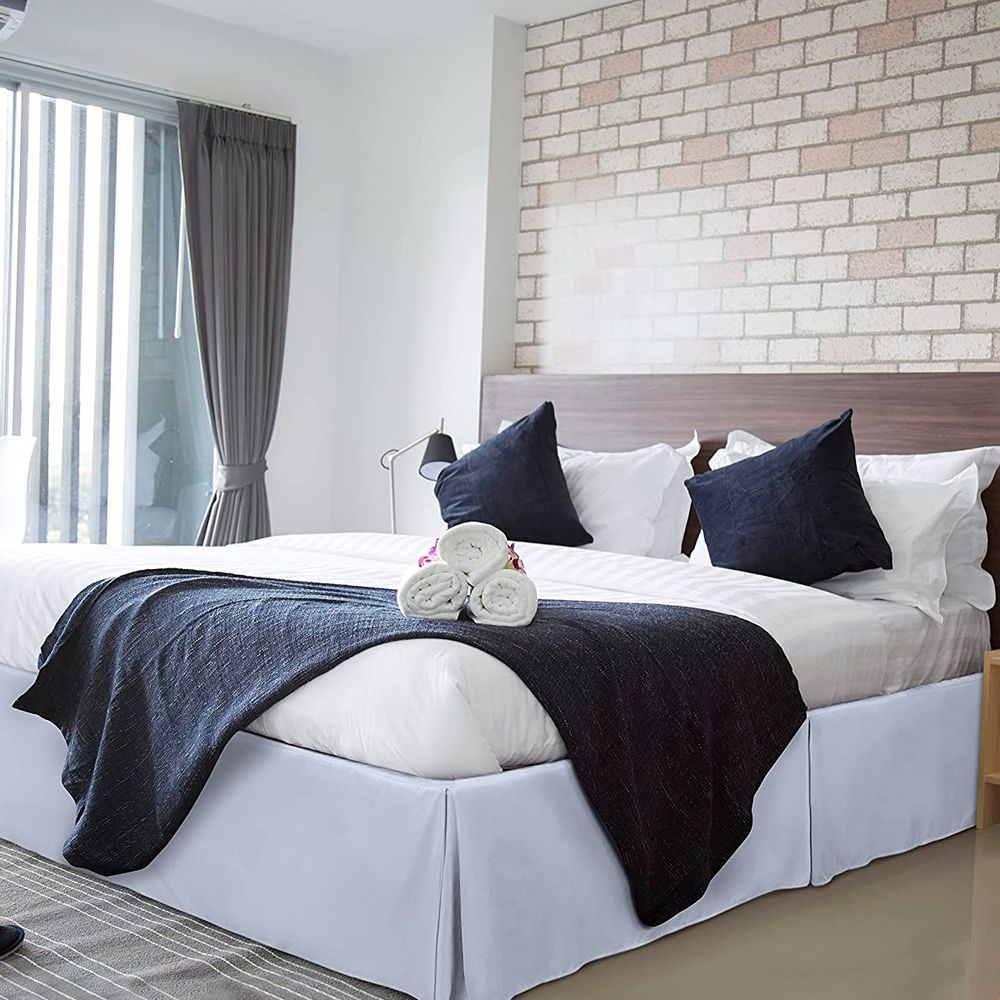 Faldon de Tarima Nube Hogar Drill con Pinzas Queen 160cm X 200cm Blanco 35cm