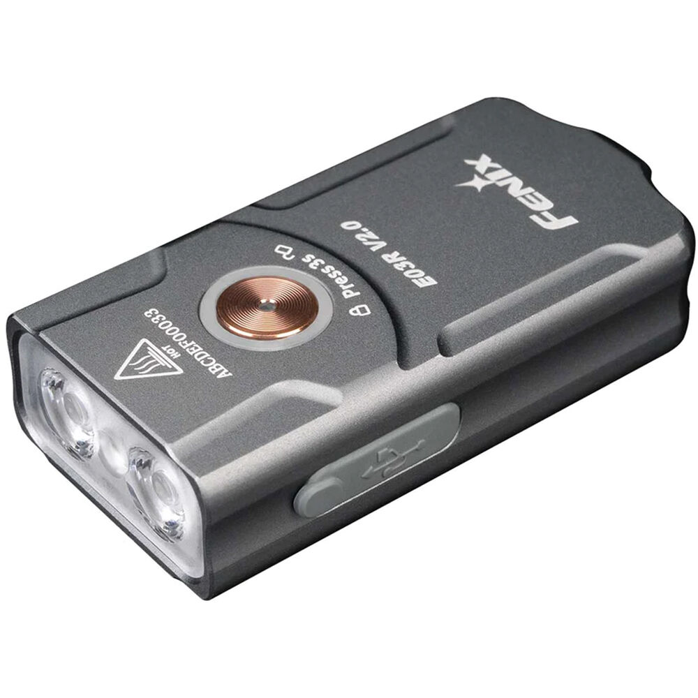 Fénix Linterna E03R V2.0 Recargable de Llavero (Gris) - Compacta, 5 Niveles de Lúmenes, Configuracio