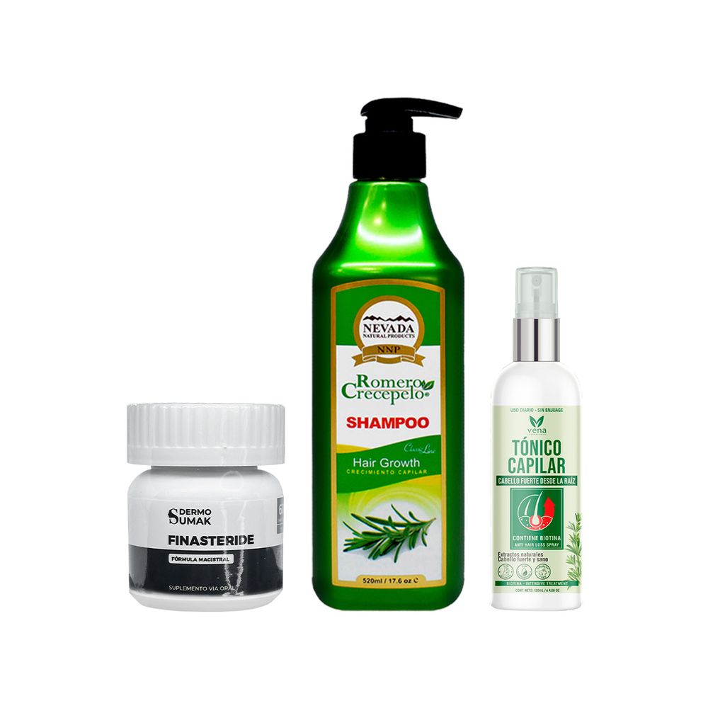 Finasteride 1mg X 60 Capsulas + Shampoo Romero 520ml + Tonico Capilar Romero 120ml