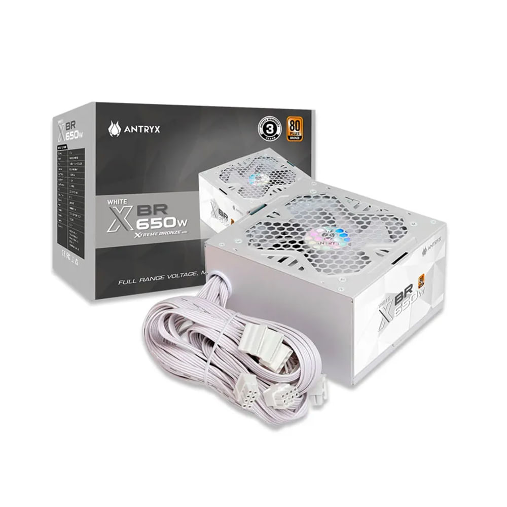 Fuente de alimentación Antryx XBR-650 650W 80 Plus Bronze, blanca, eficiente y confiable - SKU_FP650-W