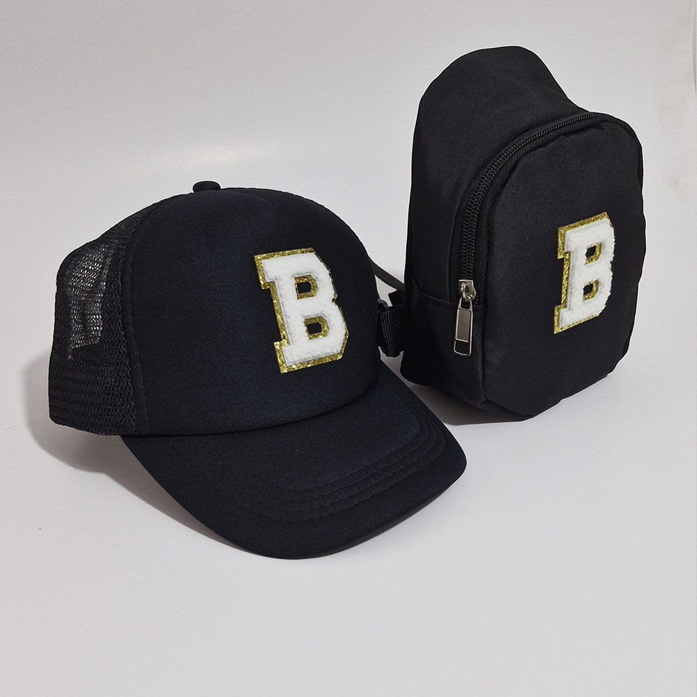 Gorro y canguro negro con letra "B" de bebe de 1 - 3 años Aititi´s Kids