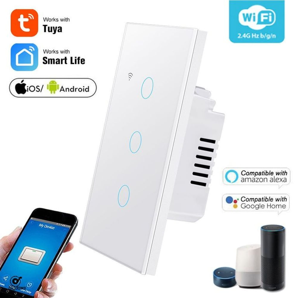Interruptor de Pared Inteligente con Panel de Vidrio Templado de 2 Bandas WiFi Multicolor