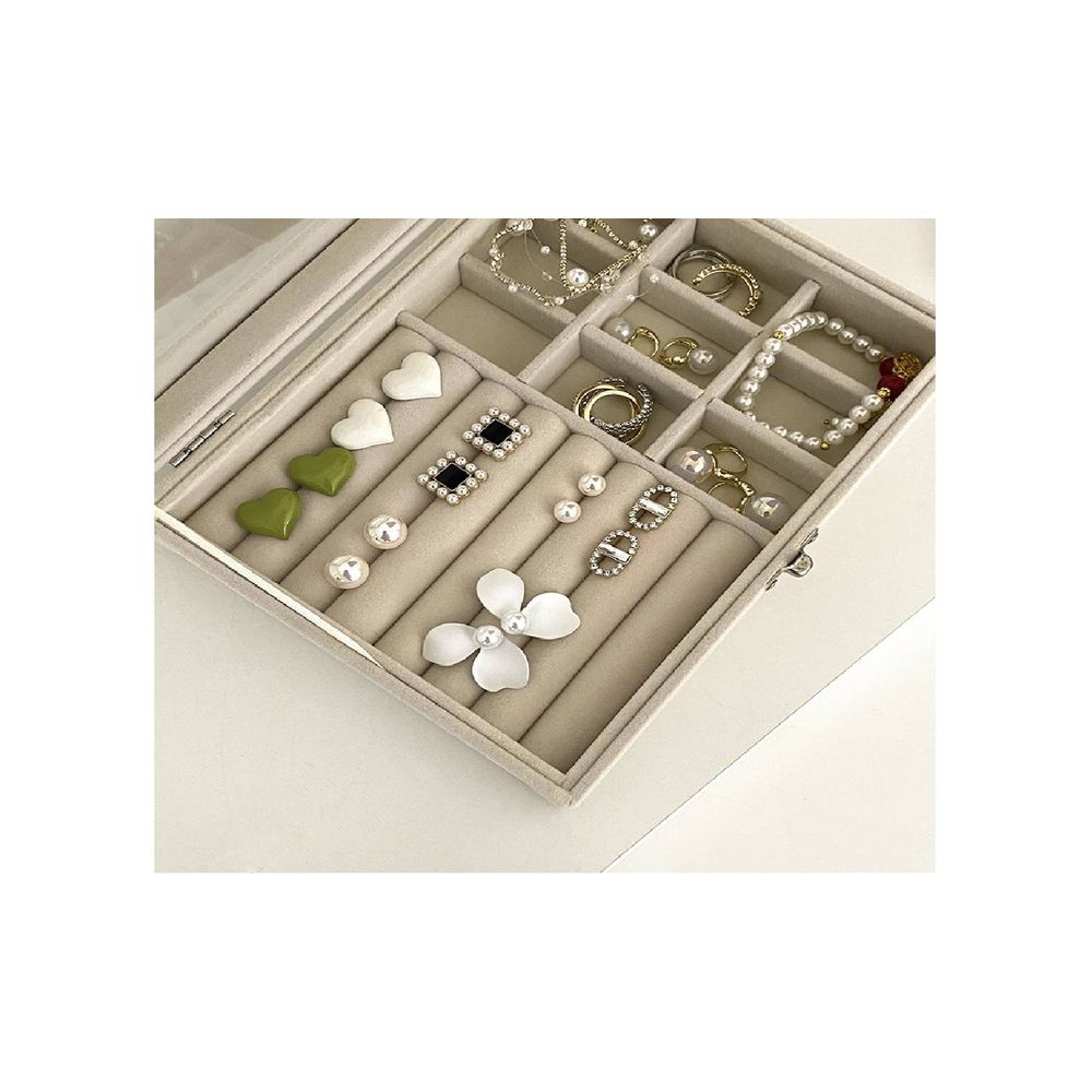 Joyero Cofre Caja Organizadora de Anillos Aretes Pendientes y Joyas color Beige