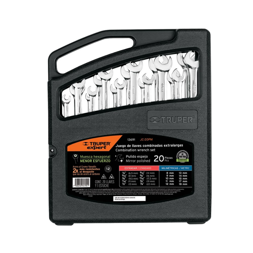 Juego 20 Llaves Combinadas Extralargas de Muesca Hexagonal Truper Expert JC-20PM 13691