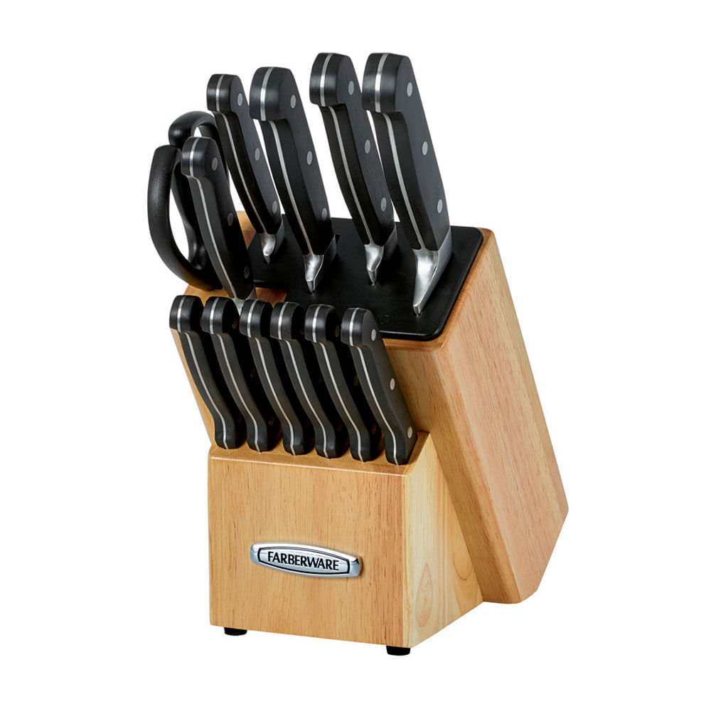| Características | cada ranura principal cuenta con un afilador de cerámica para cuchillos integrado que afila automáticamente los cubiertos cada vez que se quita el cuchillo o se vuelve a colocar en el bloque, manteniendo las cuchillas cortando como nuevas CUCHILLAS DE ALTA CALIDAD: Cada cuchillo cuenta con una hoja de acero inoxidable con alto contenido de carbono que asegura que el cuchillo conserve su borde ultra afilado y facilita el corte de alimentos MANGOS ELEGANTES: Cada mango cuenta con una espiga completa y un refuerzo que hacen que este mango esté diseñado ergonómicamente para un agarre cómodo |