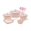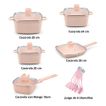 Juego De Olla de Granito Volcánico 10 Pzas más 6 Utensilios Rosa