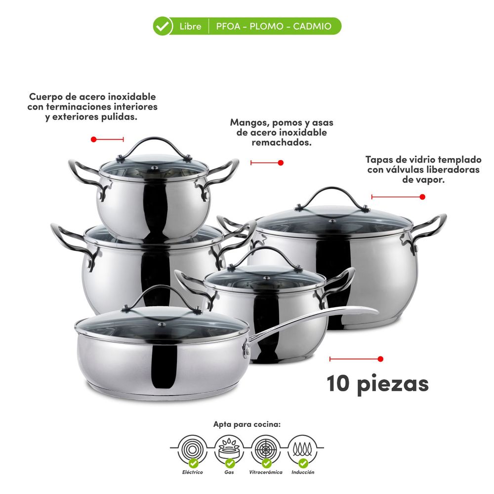 Juego de Ollas 10 Piezas Apple Design Acero Inoxidable