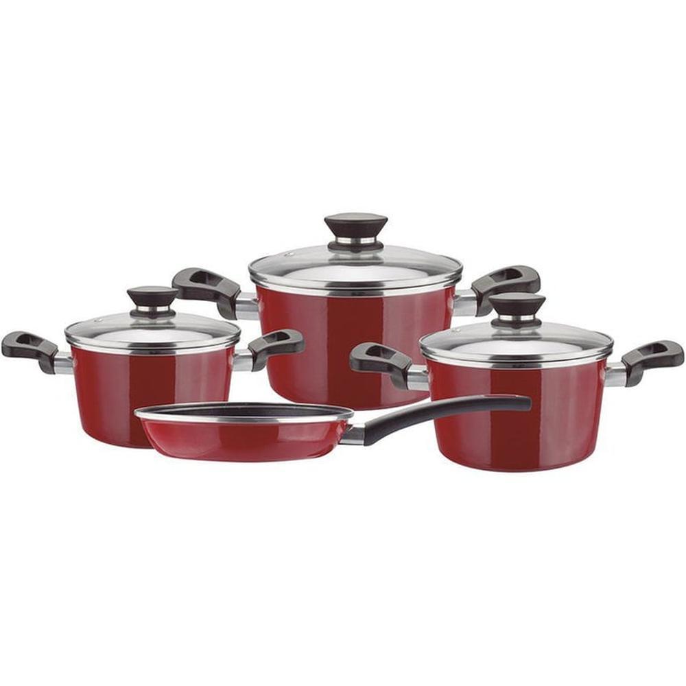 Juego de Ollas Acero Vitrificado 7 piezas Coral Rojo Magefesa