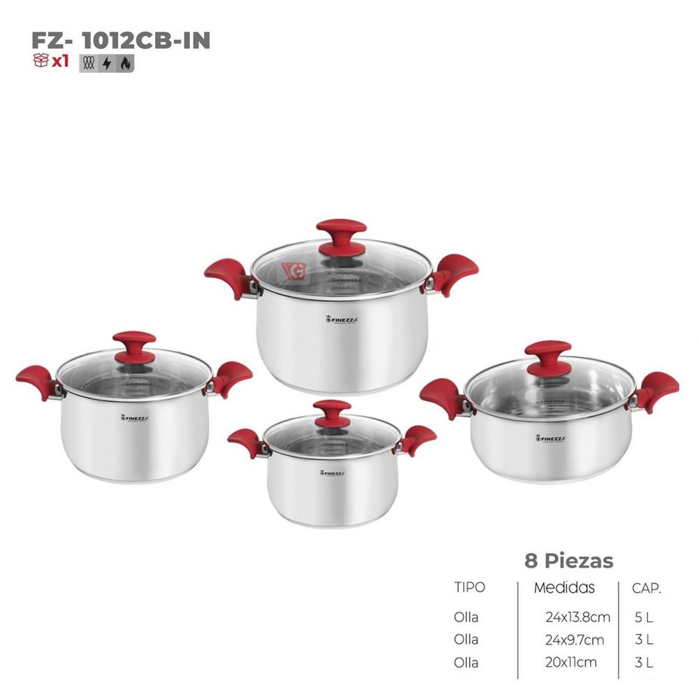 Juego de Ollas Finezza FZ-1012CBIN de Acero 8pzs