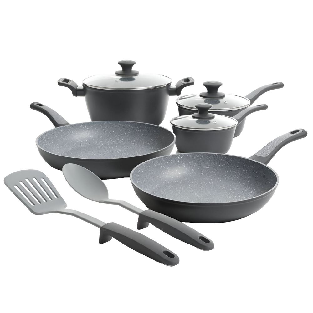 Juego de ollas oster BASTONE 127710.10 y sartenes 10 piezas aluminio forjado gris