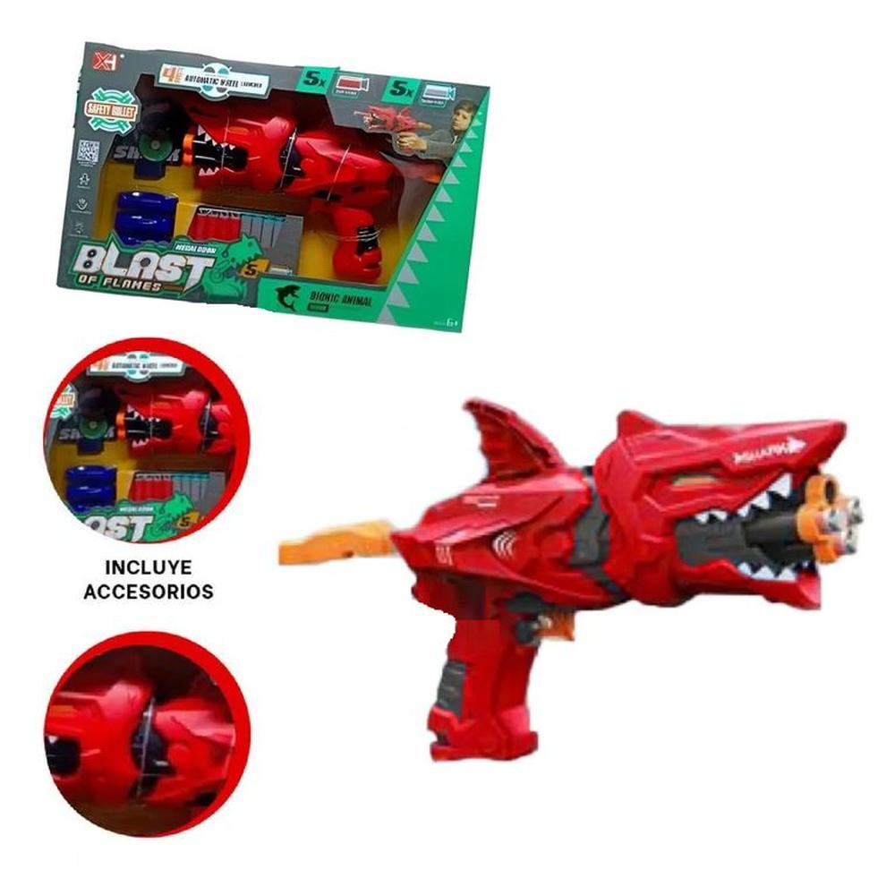Juguete Pistola Lanza Dardos Tiburon -Rojo