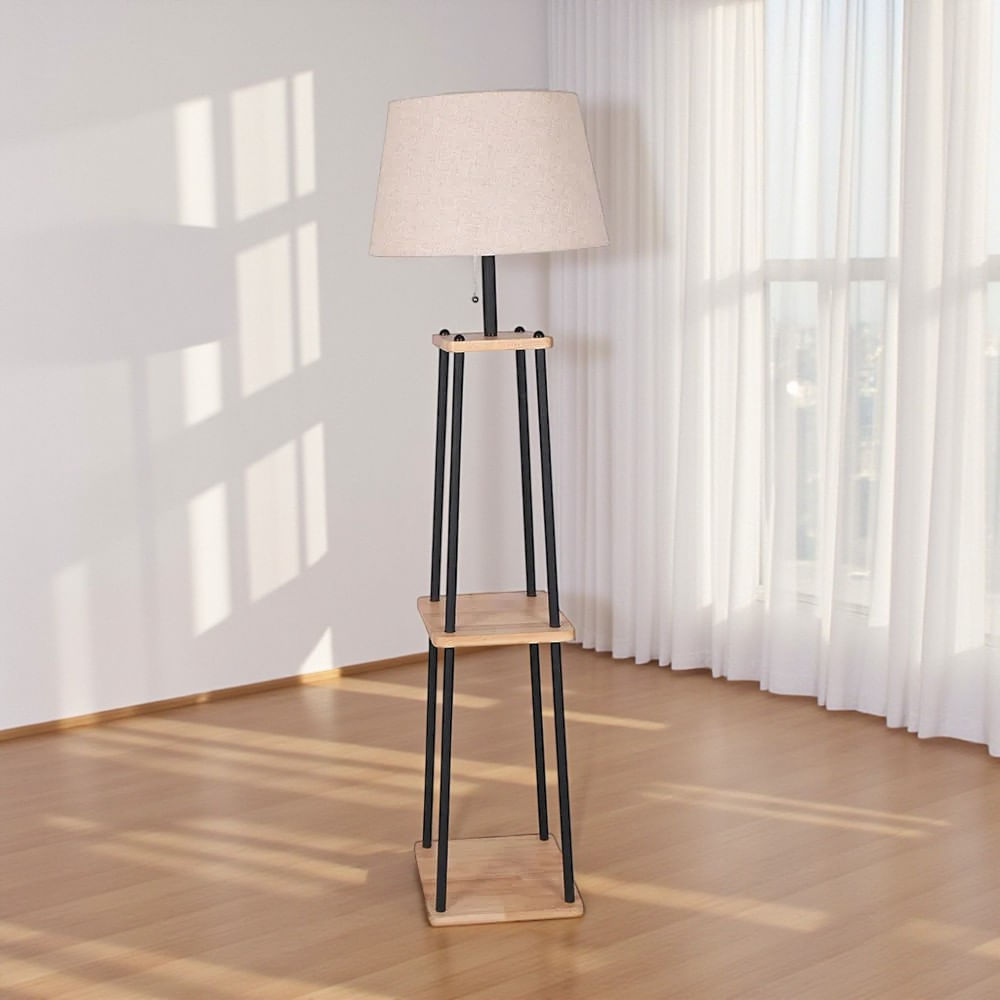 | Observaciones | Lámpara De Piso Etagere Metálica / Tablero De Madera, Marco Negro Mate, Pantalla Lino Marrón / E27 1X60W Max / * No Incluye Bombilla / Tamaño: 40x 40 x 135 cm |