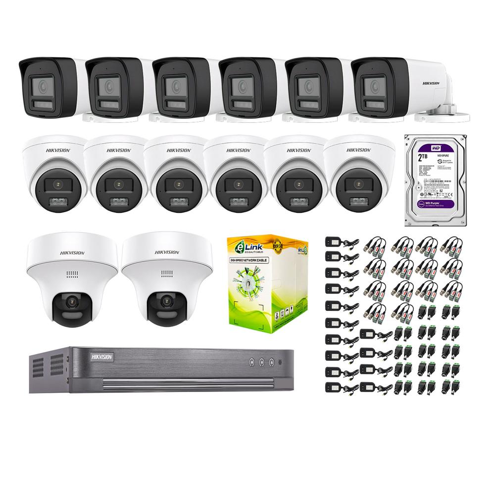 Kit 14 Cámaras de Seguridad 2MP 2 Domo PTZ Audio Bidireccional Luz Sirena 2TB