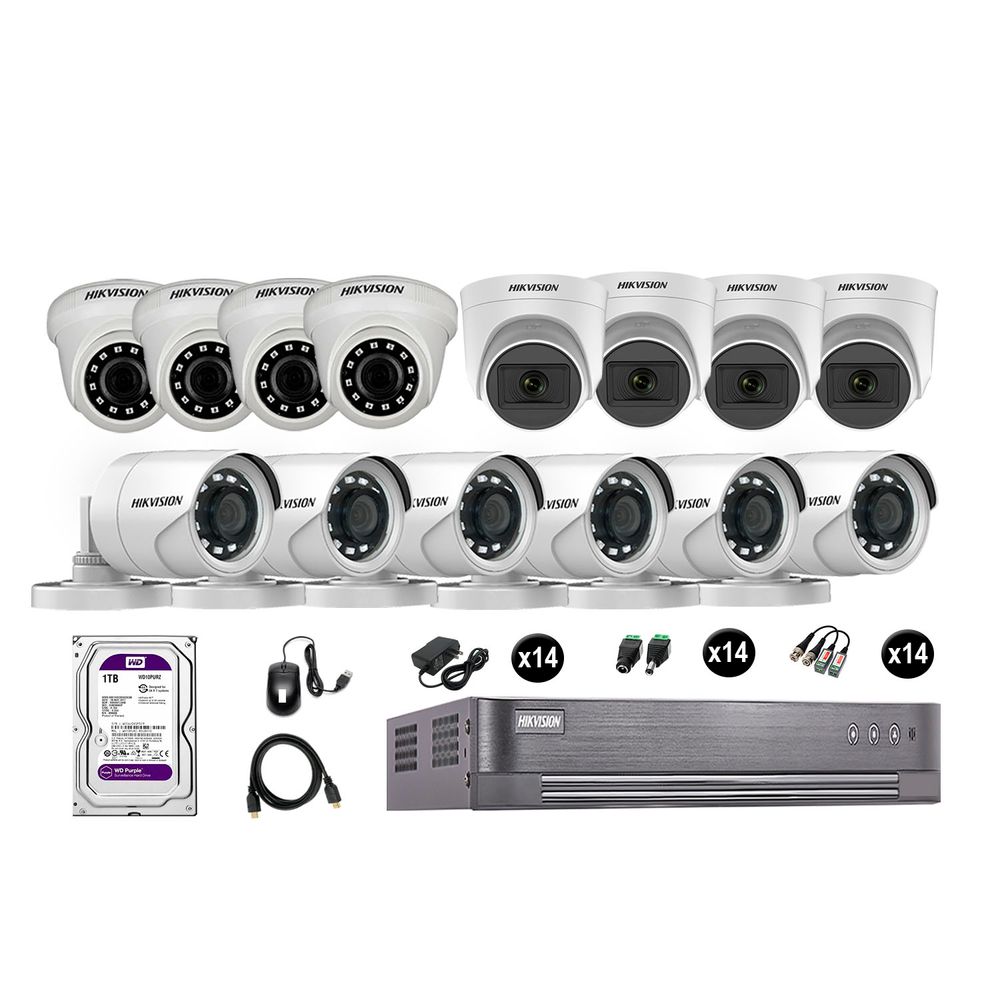 Kit 14 Cámaras de Seguridad Hikvision Full Hd Vigilancia 4 Cámara Audio Incorporado Disco Duro 1Tb