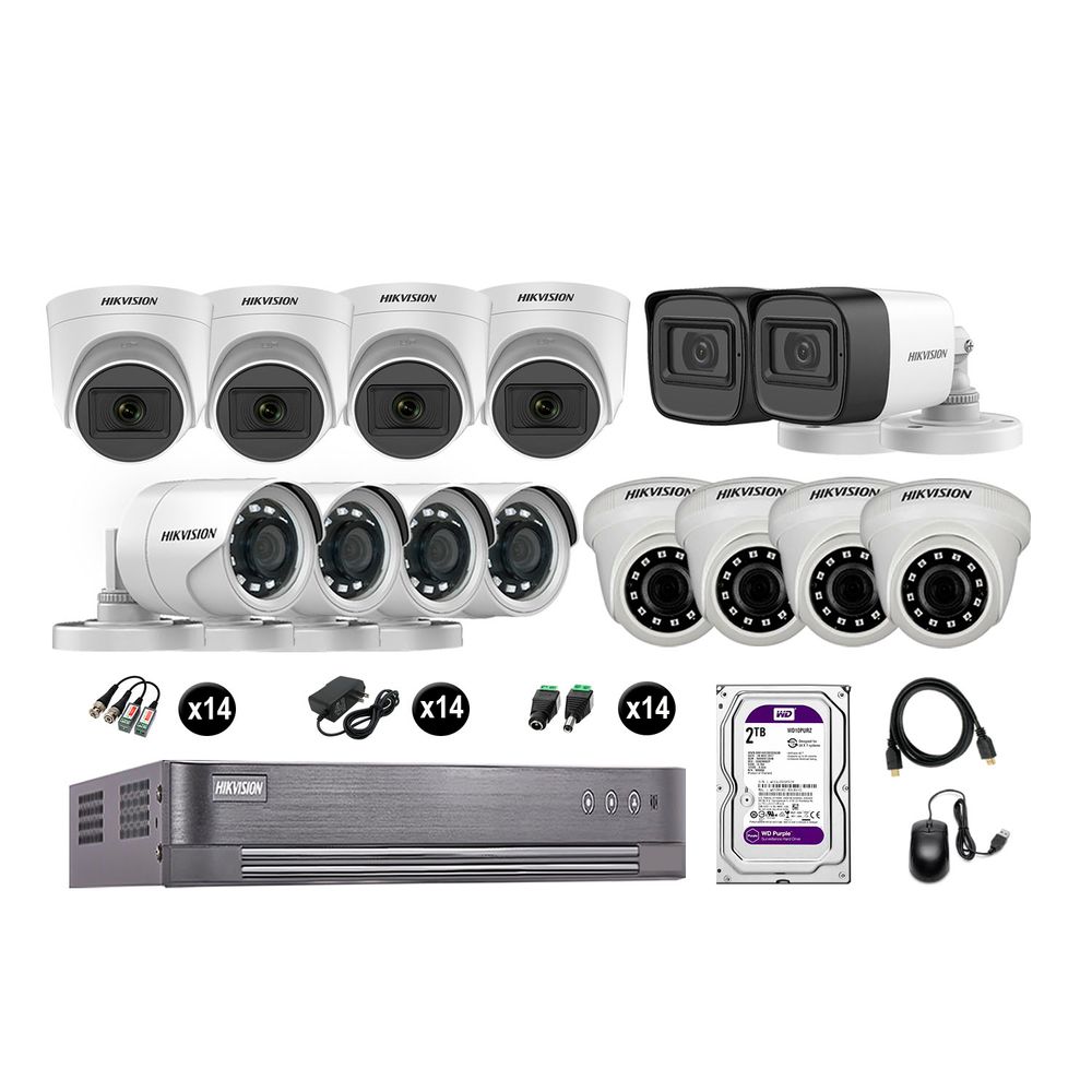 Kit 14 Cámaras de Seguridad Hikvision Full Hd Vigilancia 6 Cámara Audio Incorporado Disco Duro 2Tb