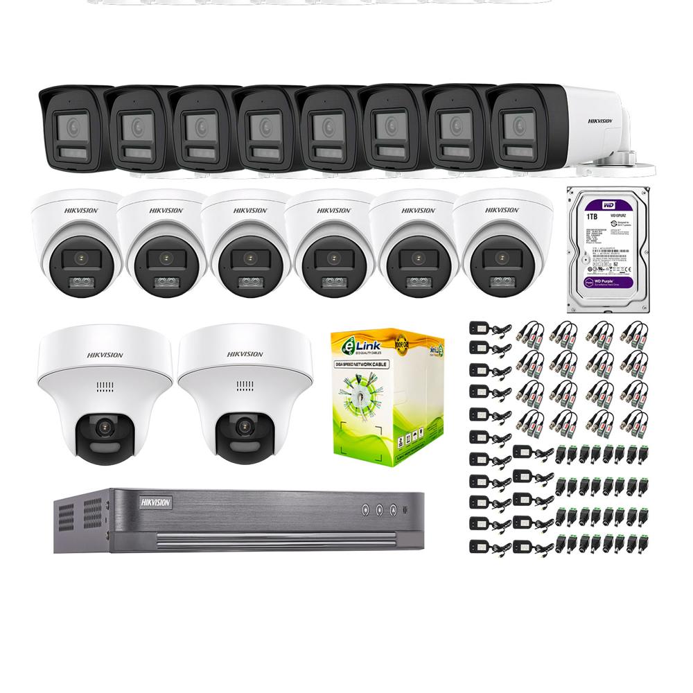 Kit 16 Cámaras de Seguridad 2MP 2 Domo PTZ Audio Bidireccional Luz Sirena 1TB