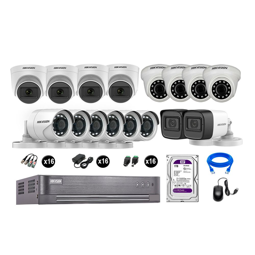 Kit 16 Cámaras de Seguridad Hikvision Full Hd Vigilancia 6 Cámara Audio Incorporado Disco Duro 1Tb
