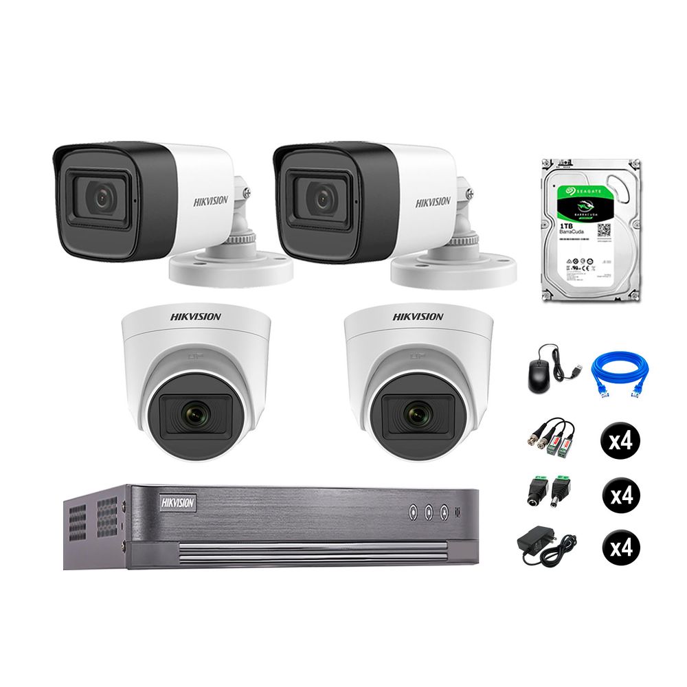 Kit 4 Cámaras de Seguridad Hikvision Audio Incorporado Full Hd 1080P Vigilancia Disco Duro 1Tb