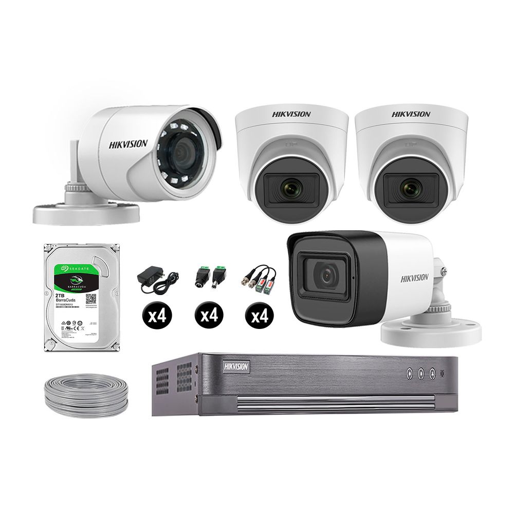 Kit 4 Cámaras de Seguridad Hikvision Full Hd Vigilancia 3 Cámara Audio Incorporado Disco 2Tb