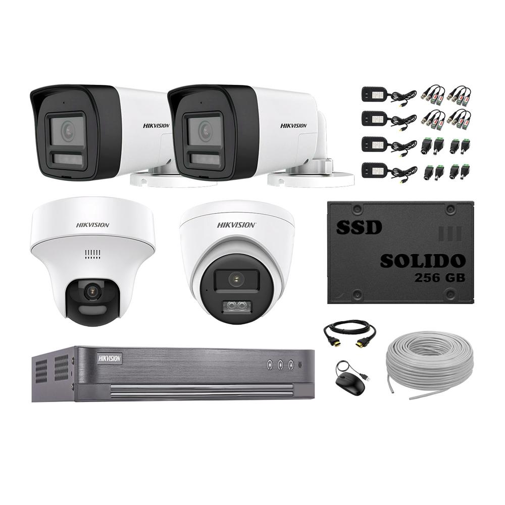 Kit 4 Cámaras Seguridad 2MP 1 Domo PTZ Audio Bidireccional Luz Sirena 256GB