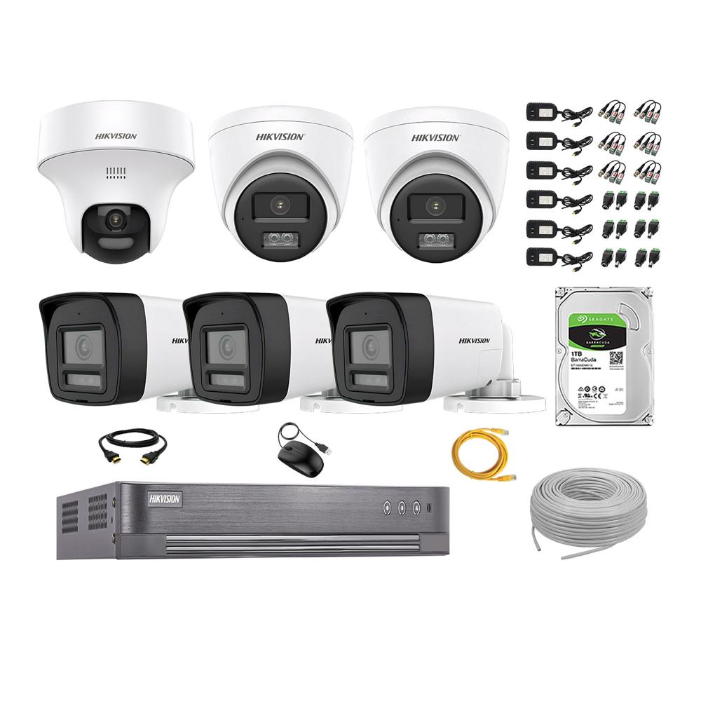 Kit 6 Cámaras de Seguridad 2MP 1 Domo PTZ Audio Bidireccional Luz Sirena 1TB