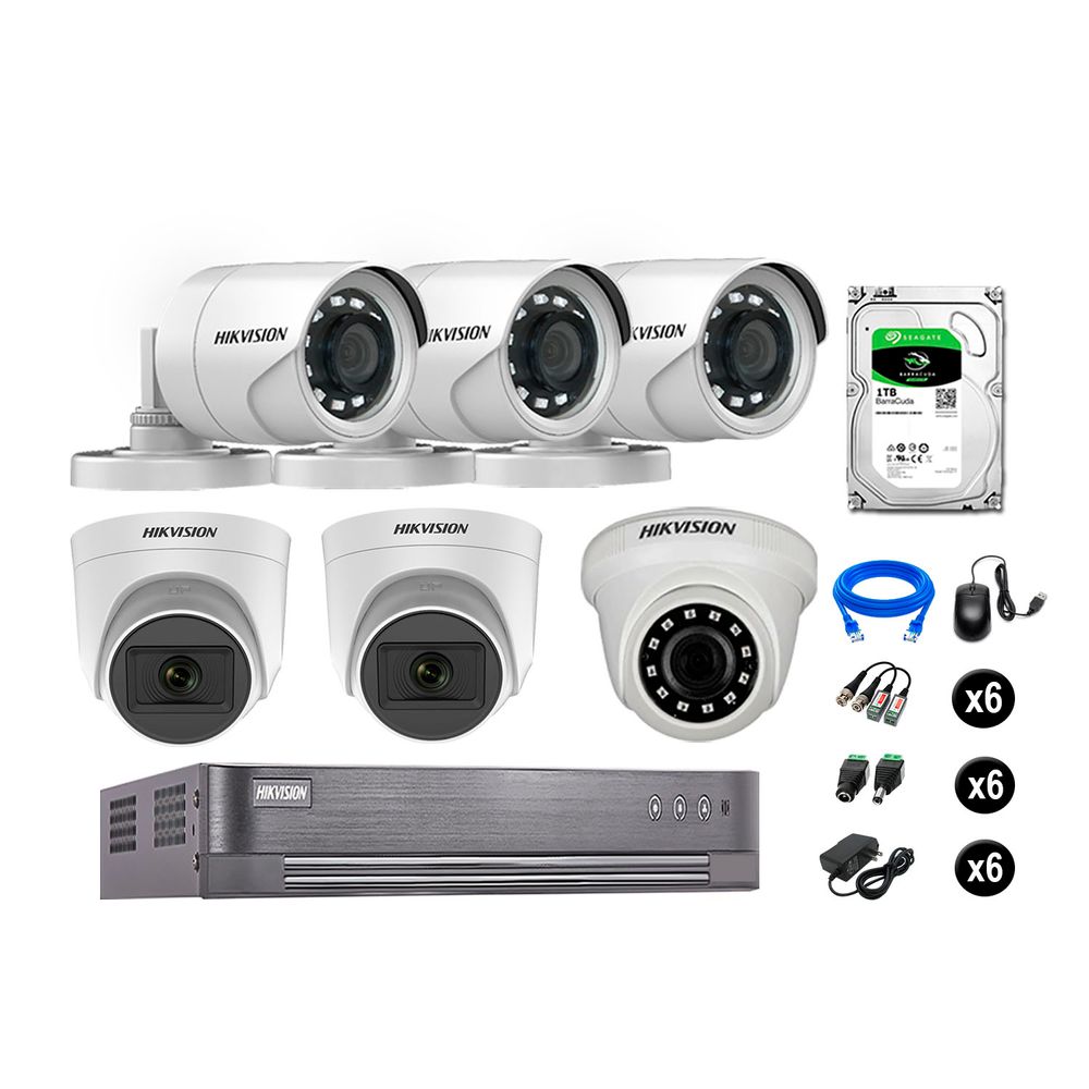 Kit 6 Cámaras de Seguridad Hikvision Full Hd Vigilancia 02 Cámara Audio Incorporado Disco Duro 1Tb