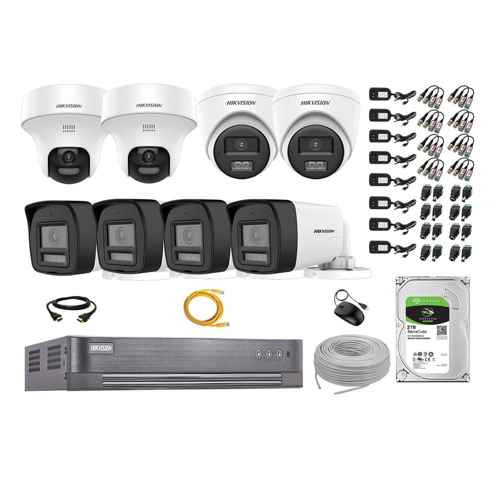 Kit 8 Cámaras de Seguridad 2MP 2 Domo PTZ Audio Bidireccional Luz Sirena 2TB