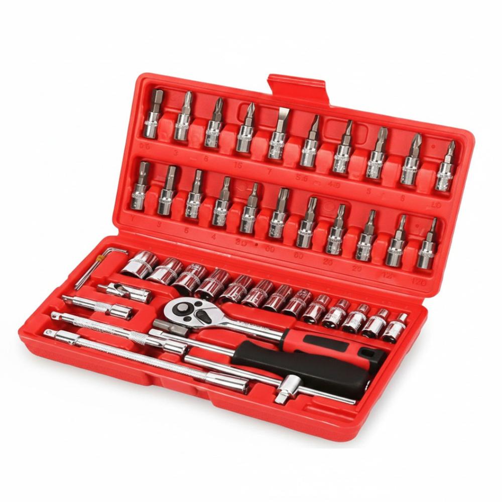 Kit de Herramientas de 46 Pcs Juego de DadosManual Doméstico y Profesional Estuche Portable