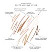 | Características | Lápiz ocular multiusos Consejos y trucos 01 - Llas cortinas se pueden superponer una encima de la otra para lograr una apariencia dimensional. 02 - Se pueden usar tonos más claros para resaltar la esquina interior, el hueso de la ceja, el puente y la zona de la ceja. punta de nariz y arco de cupido. 03 - Uselo como base de sombra de ojos antes de usar paletas de sombras de ojos midnight shadows. 04 - Se pueden utilizar tonos más intensos para contornear la nariz. 05 - Trabaja rápido y rápido use las yemas de los dedos o una brocha sintética densa para difuminar. 06 - Aumente la intensidad deseada trabajando en capas. |