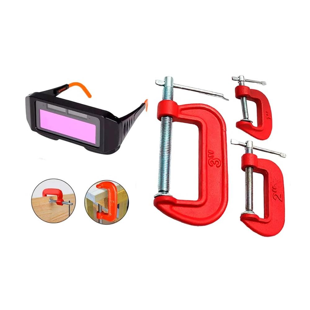 Lente De Soldar Fotosensible Oscurecimiento + Set Prensas C - Combo