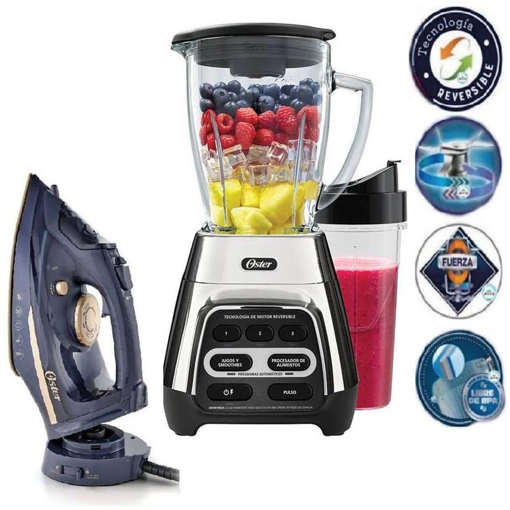 Licuadora Tecnología Reversible Negro y Plancha de vapor Oster 2 en 1