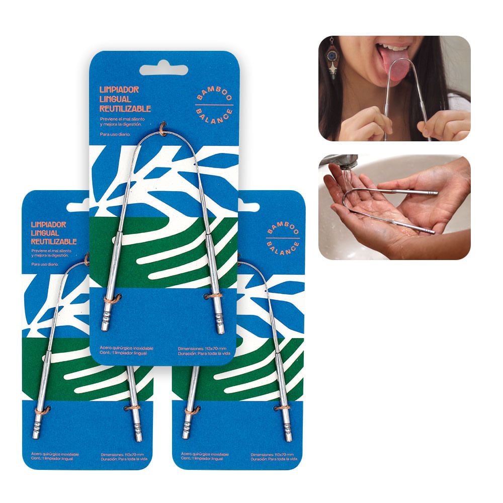 Limpiador Lingual Reutilizable de Acero Inoxidable Bamboo Balance 3 Unidades