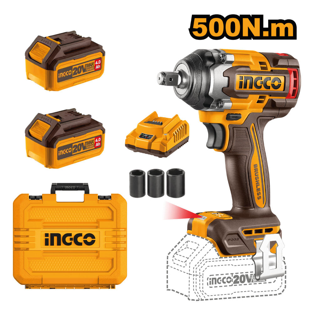 Llave De Impacto Brushless Ingco 20V 500NM + 2 Baterías 4.0AH + Cargador CIWLI2050