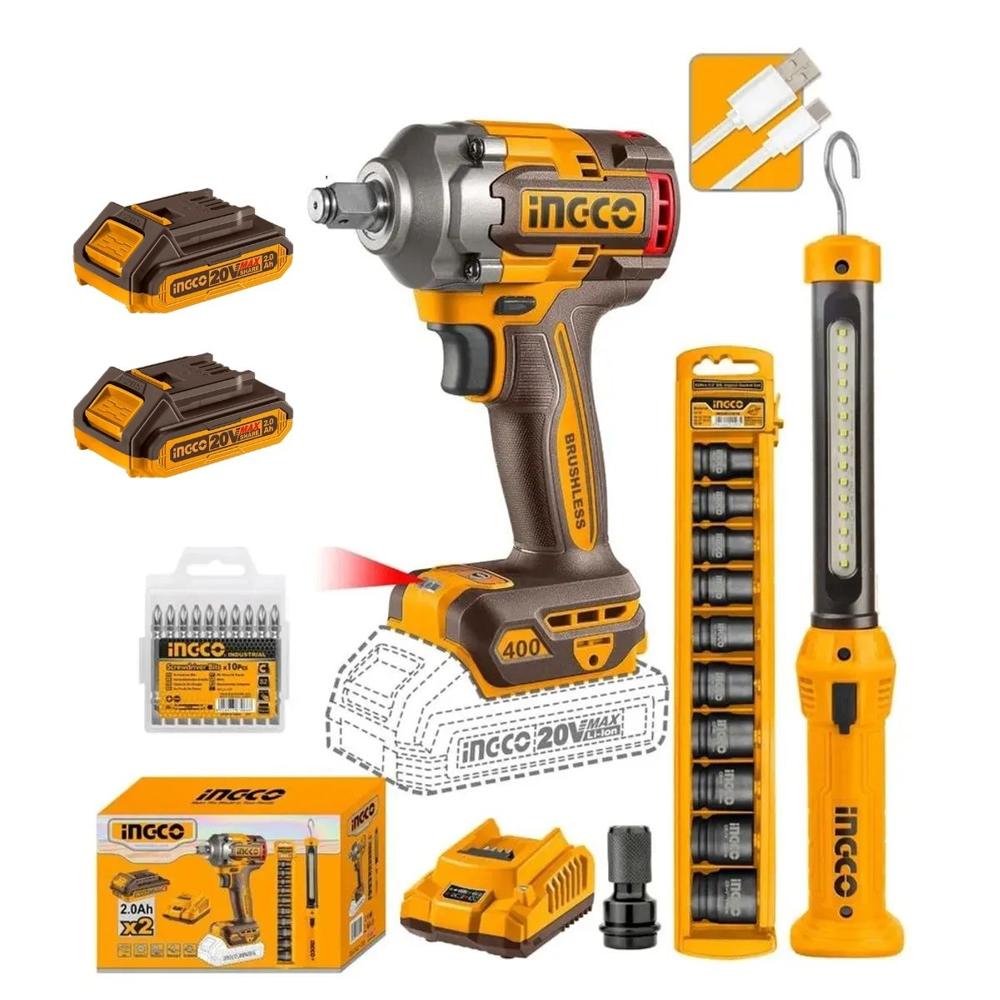 Llave De Impacto Ingco 20V 400Nm Brushless y Linterna Led