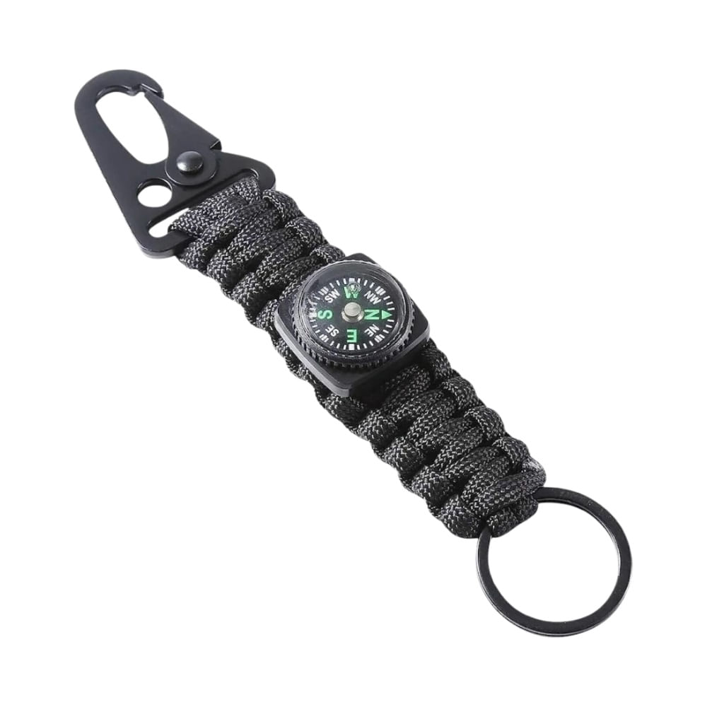 Llavero Tactico con Gancho tipo Mosqueton Brujula y Argolla Negro