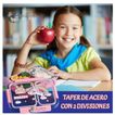 Lonchera para Niños Tipo Bento Box de 4 Divisiones, Incluye cubierto Color para Niñas - Lonchera para Niños Tipo Bento Box de 2 Divisiones de Acero Inoxidable Incluye cubierto Color Rosado