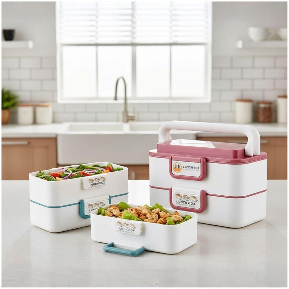 Lonchera Táper para Alimentos Comida Portátil de 2 Niveles Cierre Seguro