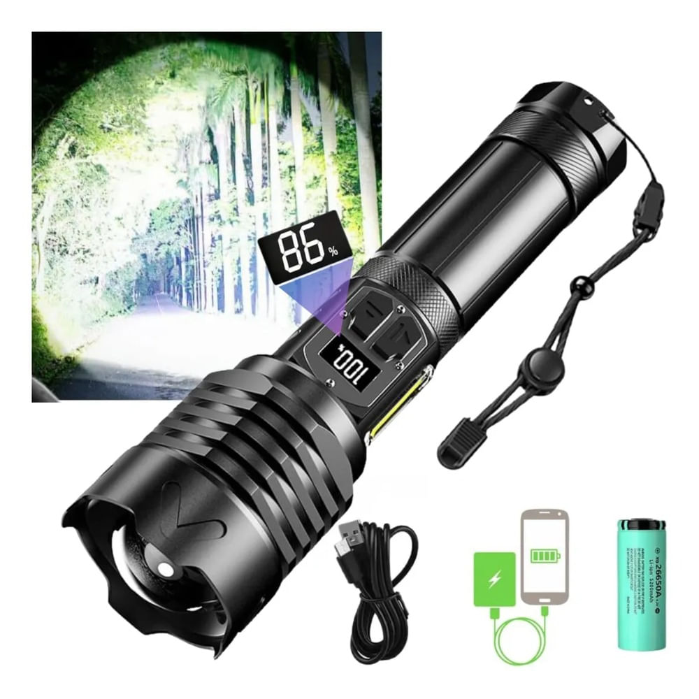 Luz Led De Alta Potencia 2000m Linterna Recargable Blanco Y Rojo Negro