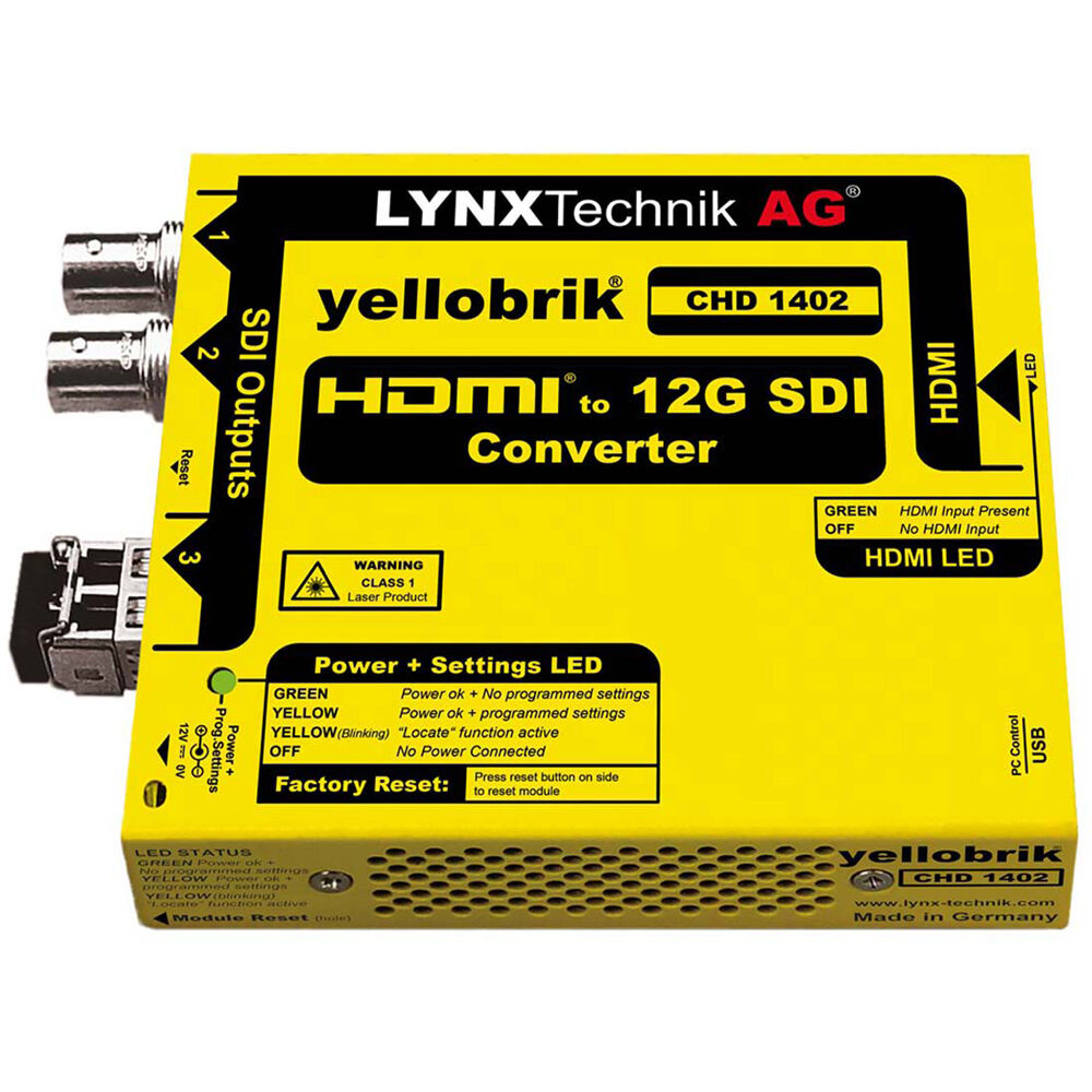 Lynx Technik AG yellobrik CHD 1402 Convertidor HDMI a 12G-SDI - 1 x HDMI, 2 x 12G-SDI, UHD 4K60, Aud