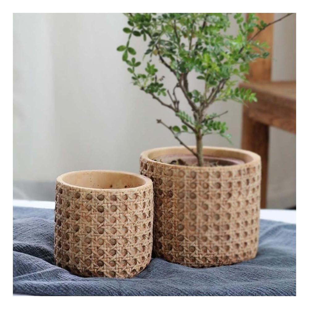 Macetero Elegante Cilindro Cemento Mostaza Tejido Rombos Salon Y+Post It