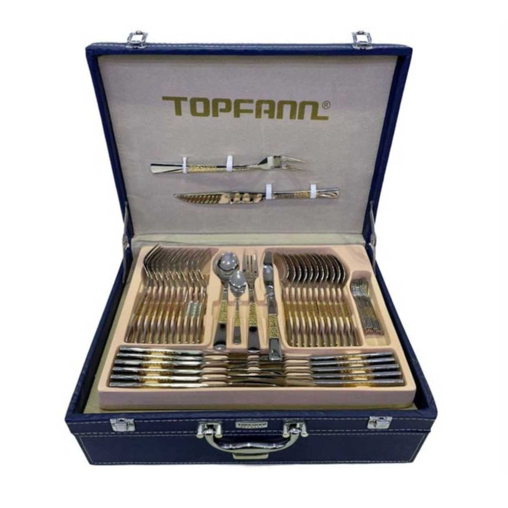 Maletin de Cubiertos Topfann Luxury 86 Piezas Acero Inoxidable Detalles en Dorado