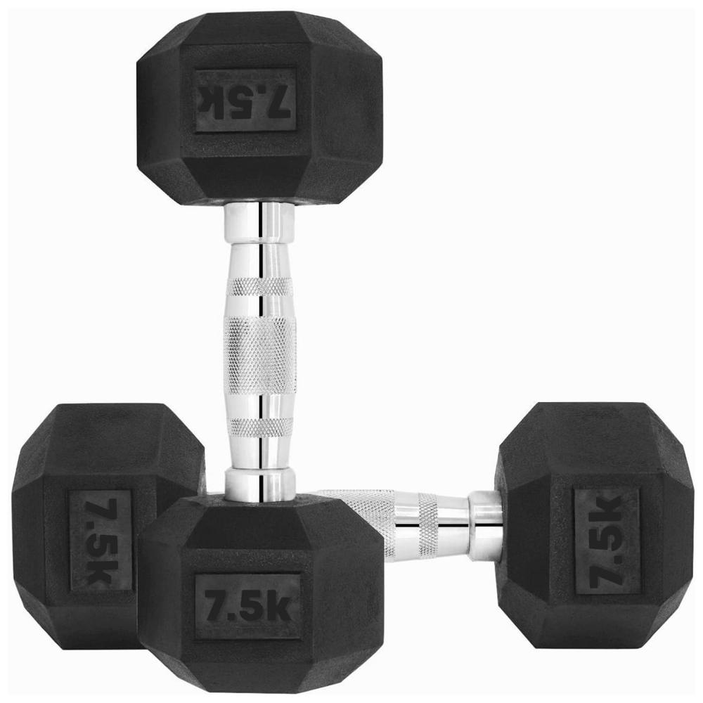 Mancuernas, Par de Pesas Hexagonales Cromadas y de Caucho 7.5Kg