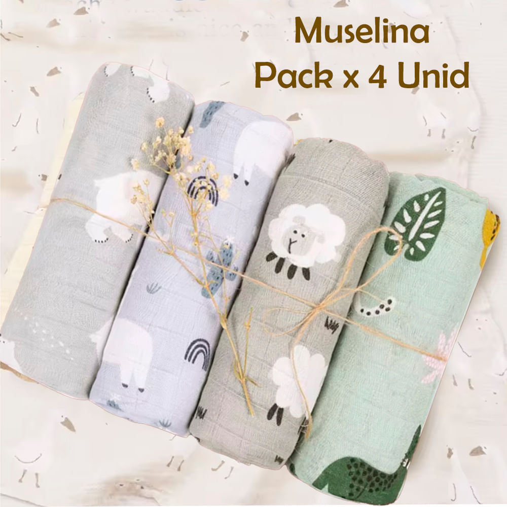 Manta Muselina para Bebé Bambú y Algodón Pack x 4 Unidades SMT68