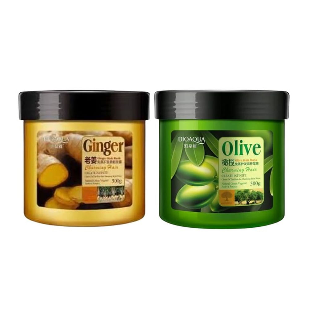 MASCARILLA DE JENGIBRE PARA EL CABELLO 500ML + MASCARILLA DE OLIVO PARA EL CABELLO 500G - BIOAQUA