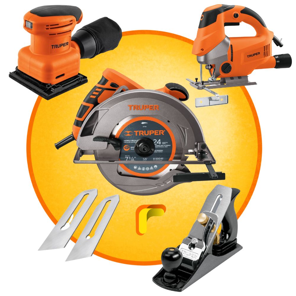| Incluye | MEGACOMBO Sierra circular caladora lijadora cepillo carpintero N4 |