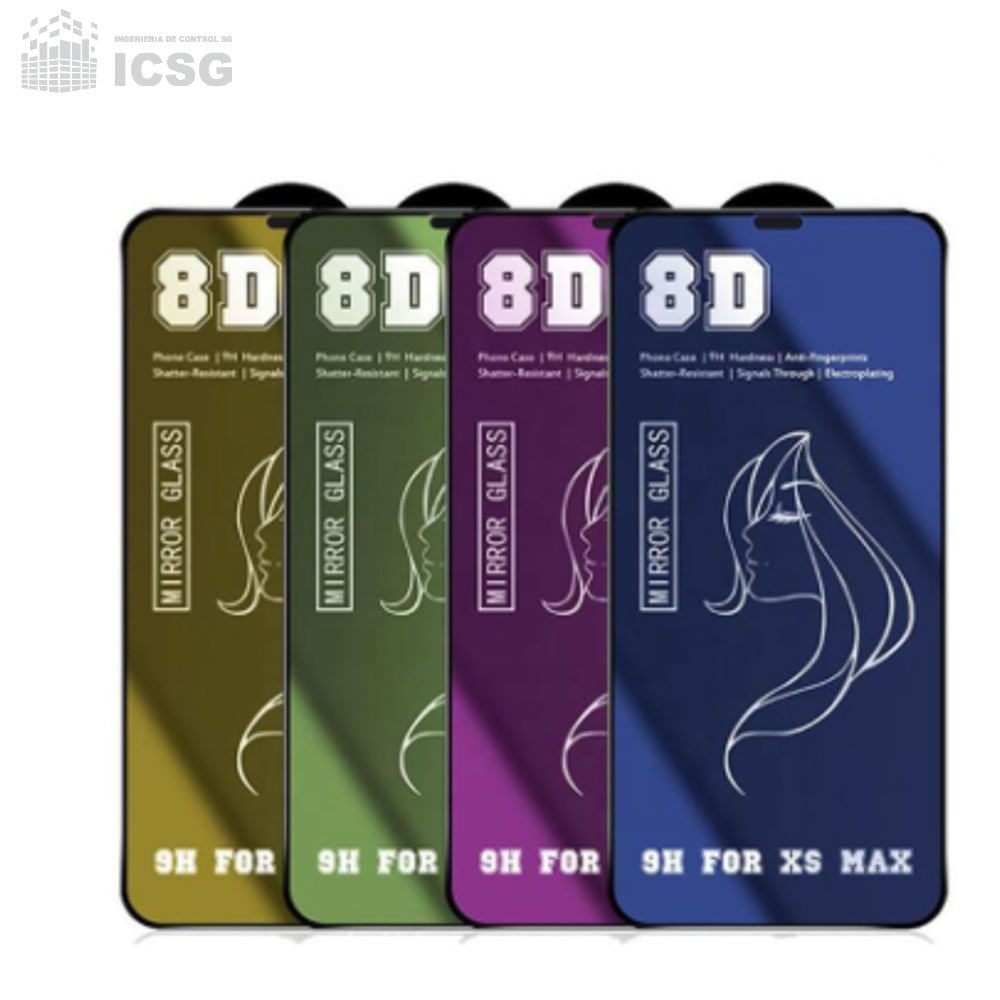 Mica vidrio espejo 8D colores para iPhone XS MAX + REGALO