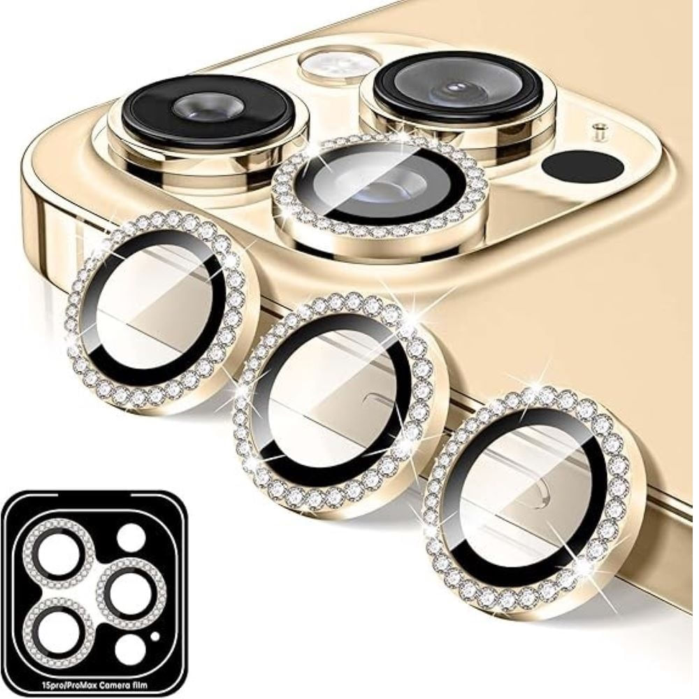 Micas de cámara individuales piedras para iphone 14 pro 14 pro max dorado