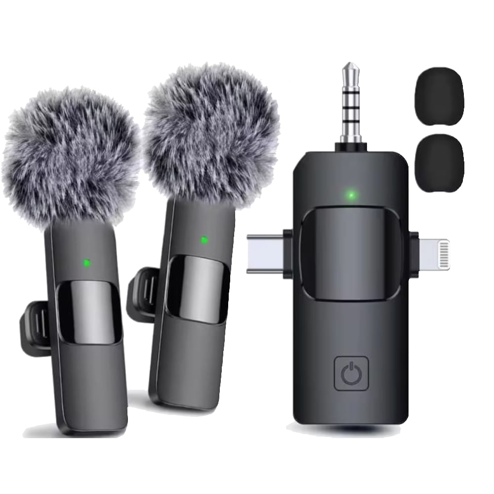 Micrófono Solapero Doble K15 Tipo C Lightning y Auxiliar