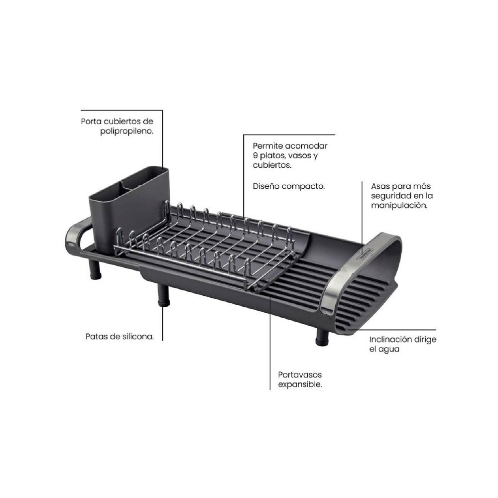 Miniescurridor de Vajilla TRAMONTINA con Secador y Portacubiertos Grafito